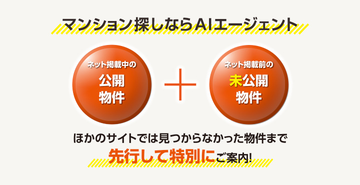 無料登録いただくことで 一般公開前の未公開物件、お客様のご希望条件に沿った物件を AIエージェントが選定し定期的にお客様に物件をご提案するサービスです。
